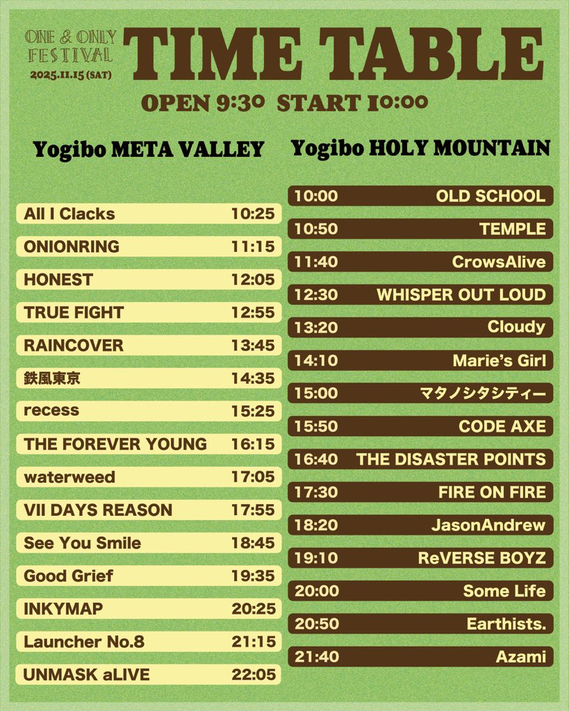 11/15に大阪難波Yogibo META VALLEY / HOLY MOUNTAIN にて開催のONE & ONLY FESTIVAL